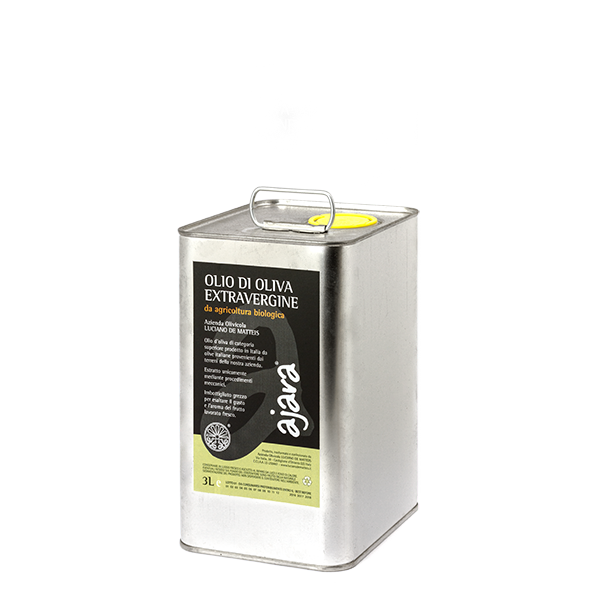 Olio extravergine di oliva biologico, prodotto dal blend assolutamente naturale di olive Celline di Nardò e Leccino, dal gusto fresco, fruttato, leggermente amaro e piccante. Molto delicato in bocca, è un olio di categoria superiore ottenuto dalle olive solo mediante procedimenti meccanici. Ha consistenza semidensa e profumo fresco e intenso e, grazie alla sua delicatezza, si abbina con il pesce, le carni bianche, le torte dolci e salate, i formaggi stagionati e i piatti complessi e speziati, dove la ricchezza di sapori trova la massima esaltazione. Confezionato in lattina da 3 litri.